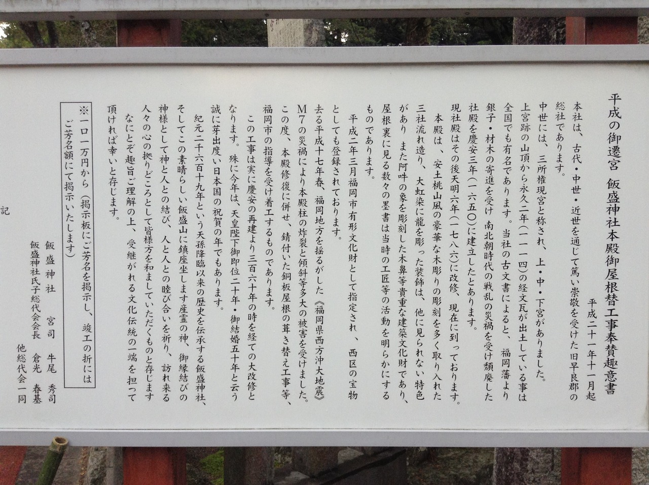由緒は、清和天皇の時に飯盛山に創建され、早良郡の総社として崇められてきました。