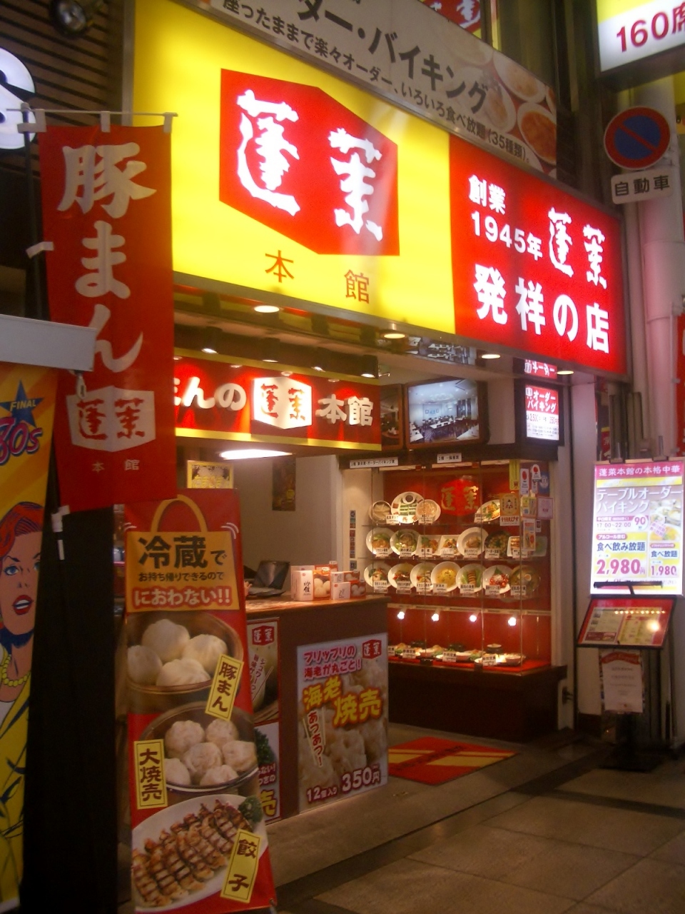 心斎橋から難波に歩いている途中にありました。モクモクと湯気が出ていて、おいしそう。蓬莱は551のお店とどう違うのかな?と思いながらも、蓬莱本館で、ホカホカのシュウマイを購入しました。