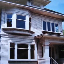 明治村の4丁目、入鹿池のそばに建っています。1907年(明治40年)頃、シアトルに建てられたもの。当初はアメリカ人の住まいであったが、1930年代(昭和5~14年)に日系移民の所有となったが、戦後は日系一世のための福音教会として使われていたものとか。