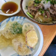 キス2枚にサツマイモ・大葉・レンコンの天ぷら付。