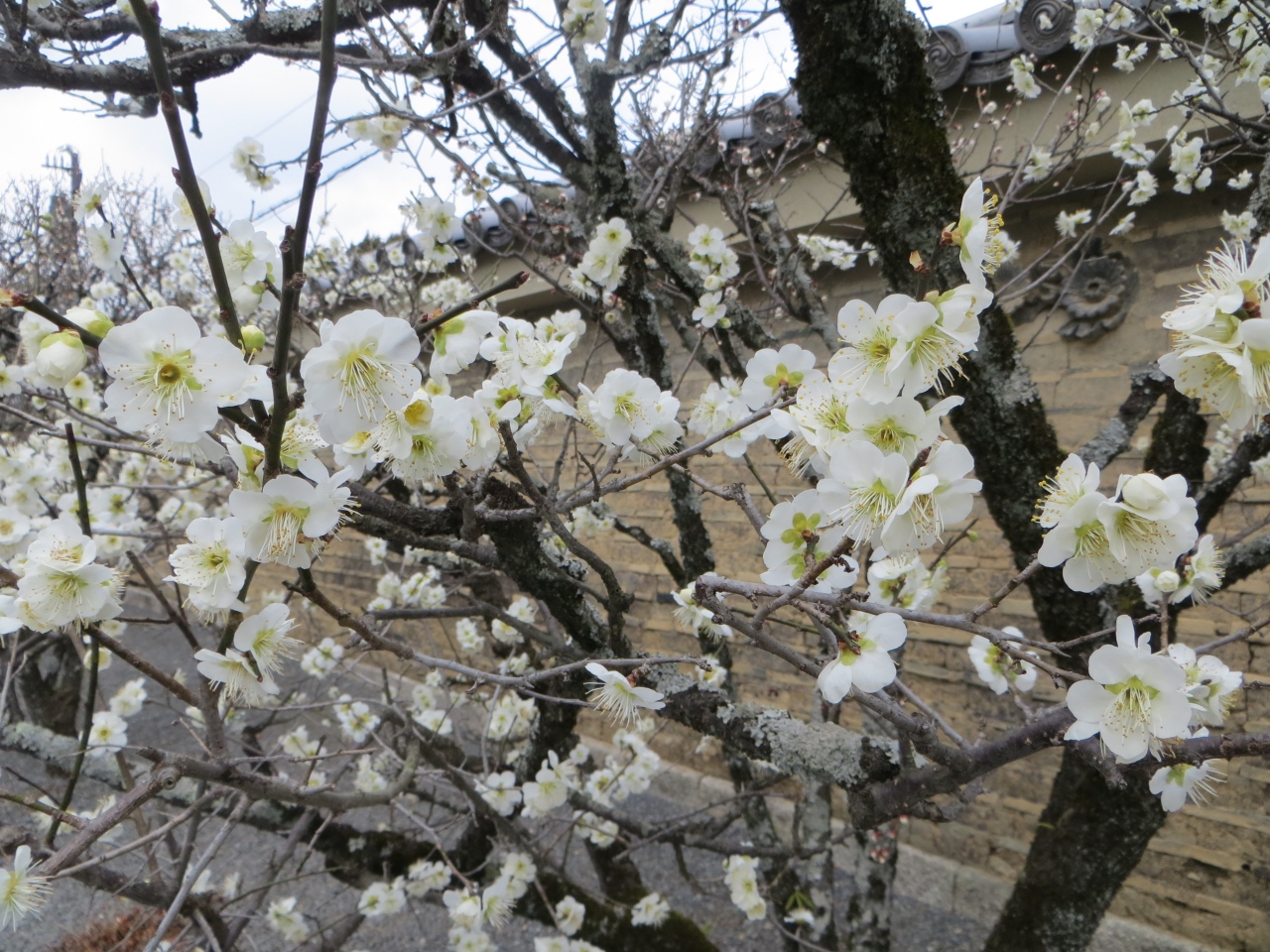 天龍寺の境内にはあまり多くは無いですが梅が植えられています。その梅の枝ぶりは見事で毎年梅が咲くのを楽しみにしています。今年もそろそろかと思い行ってみました。ちょっと早めでしたが白梅が咲いていました。あと1週間ぐらいで満開になると思います。