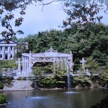 明治村の5丁目、村の北の端っこにあります。明治45年(1912年)隅田川にかけられた大橋で、設計監理には東京市の技術陣が当たったが、鉄材は全てアメリカのカーネギー社の製品が使われているそうです。大正12年の関東大震災の折には、他の鉄橋が落ちる中で、この新大橋だけが残り、避難の道として多数の人命を救ったとか。橋の一部だけが移設されたものですが、橋と池と内閣文庫や川崎銀行本店が重なる景色は美しい。
