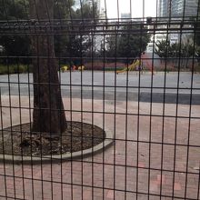 この公園は現在工事中なのか、厳重に柵で覆われ、一切立ち入りが出来ないようになっています。