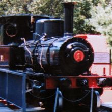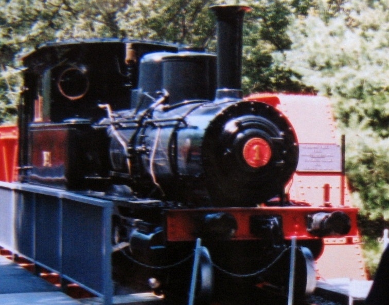 明治村の4丁目、村の中ほど、入鹿池のそばにあります。明治30年(1897年)尾西鉄道が開業するにあたり、アメリカのブルックス社から購入した機関車です。前輪2軸、動輪2軸、従輪1軸の小さな機関車は大正14年に尾西鉄道と名古屋鉄道が合併した際、名古屋鉄道の所有になり、その後新潟県の日本曹達(株)内の工場専用機として働いていたとか。