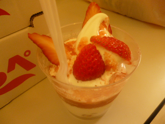 ソフトクリームは濃厚でおいしくカットフルーツもお値打ち!季節のパフェは本当にお勧めです。300円から500円以内で甘味を味わえます。