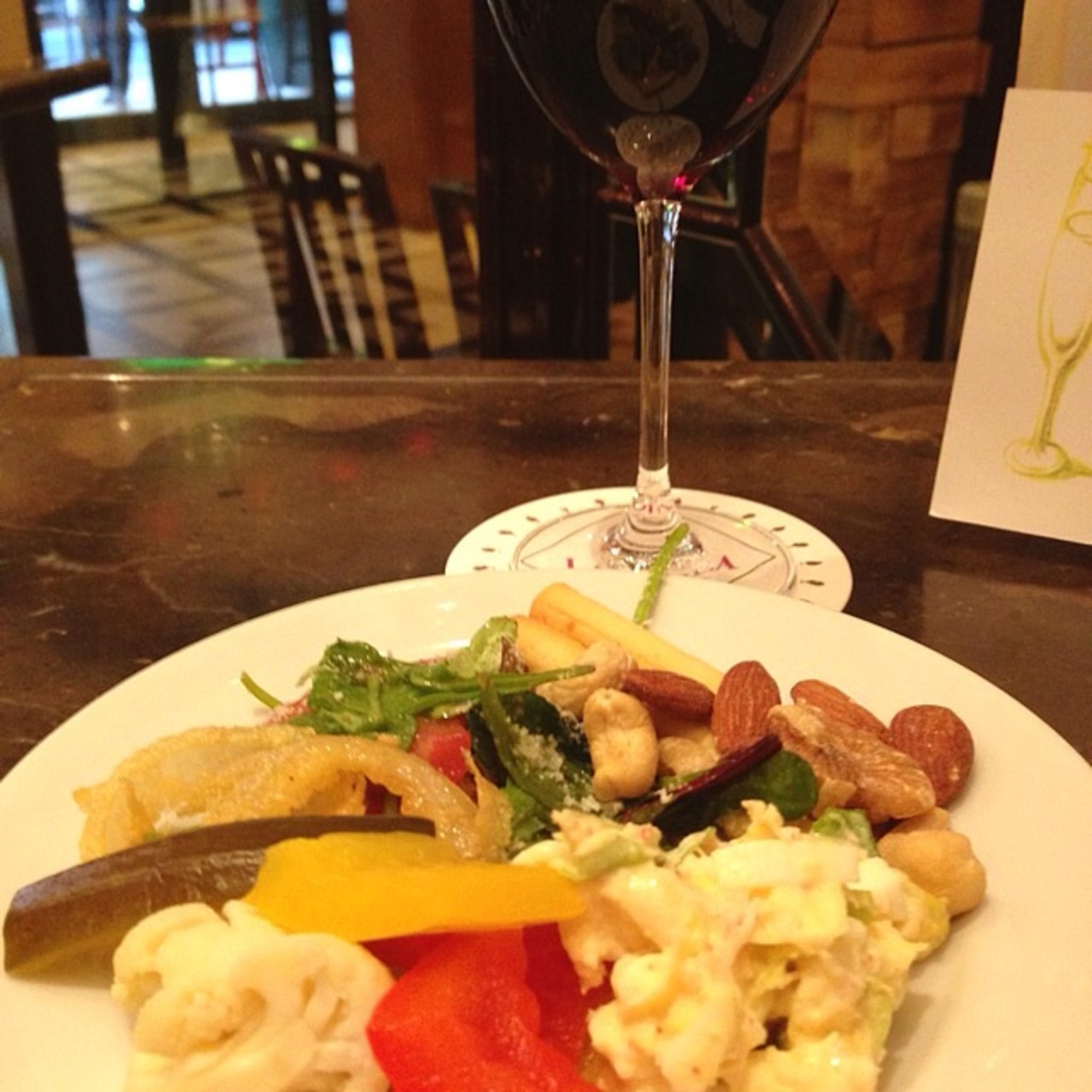 待ち合わせの時間調整にも気分転換にも、ちょっと軽く飲みたい時に便利なシステム。ドリンクは赤白ワイン、スプマンテ、ビール。おつまみはサラダとナッツ等でした。客層も落ち着いていてスタンディングでもゆったりした気分で過ごせます。