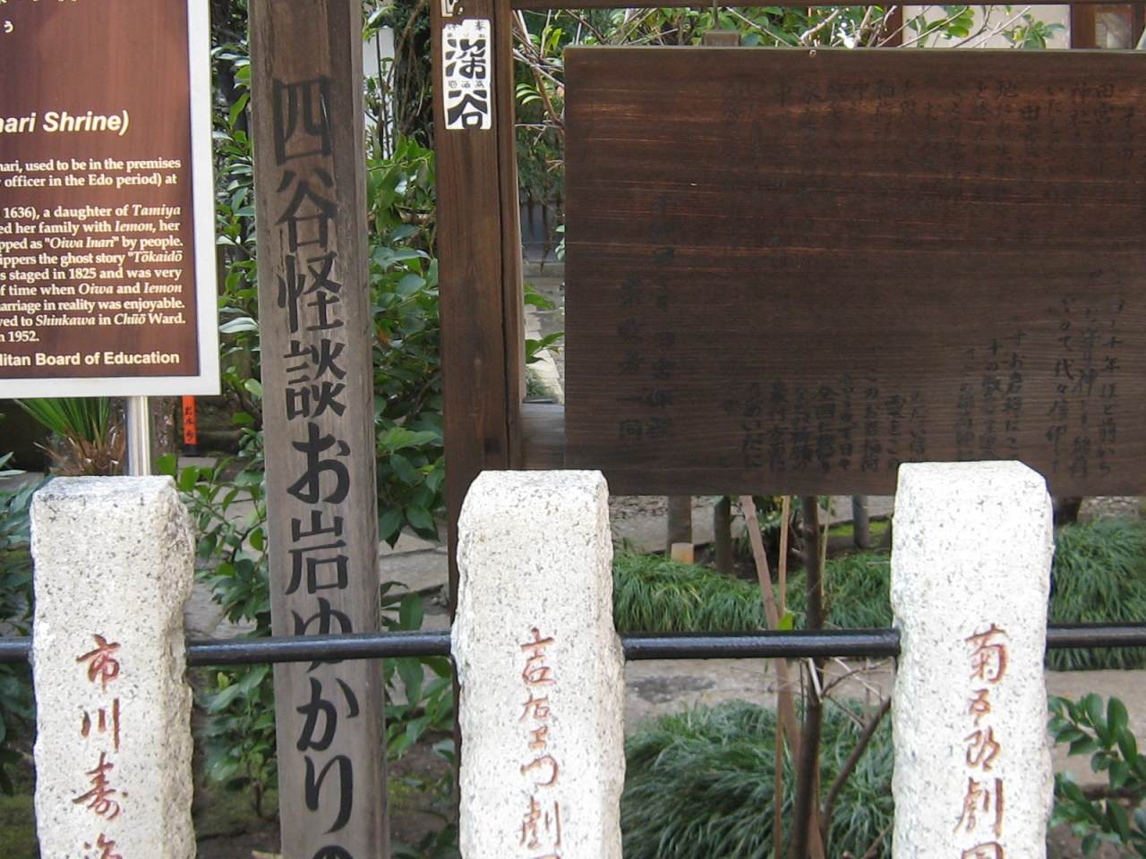 歌舞伎の怪談話、於岩さんゆかりの本家本元の神社です。新宿区左門町にある小さな稲荷神社。四谷警察署のすぐ近くです。東海道四谷怪談で有名なお岩稲荷として有名な神社です。江戸幕府の御家人田宮家の御社で、田宮於岩にあやかり、於岩を合祀して於岩稲荷と呼ばれるようになったといいます。