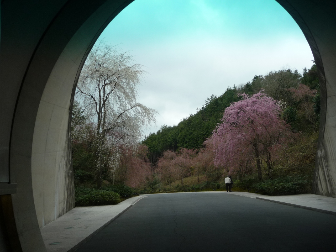 石山寺の駅からバスで40分ほどかかる山の中にある美術館、建物が海外で有名なのか日本人より外国人の訪問客の方が多い。休館日が多いので注意。入り口のところにある建物でチケットを買って歩いていくか、シャトルバスで美術館に行きます。トンネルをくぐっていくアプローチも素敵で春はしだれ桜が綺麗です。展示内容のクオリティも高いので行く価値があると思います。