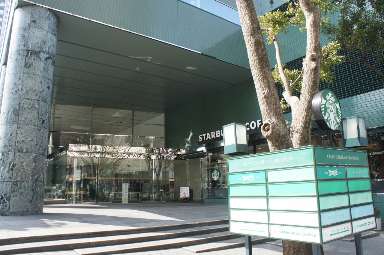 新宿グリーンタワービルは、新宿中央公園の北隣り。ビル全体が緑色なんですが、ちょっとくすんだような色合いで、これはどうなんでしょうか。お寺やガソリンスタンドも含めた一角を再開発したようですが、そのガソリンスタンドも緑色の統一色調になっています。