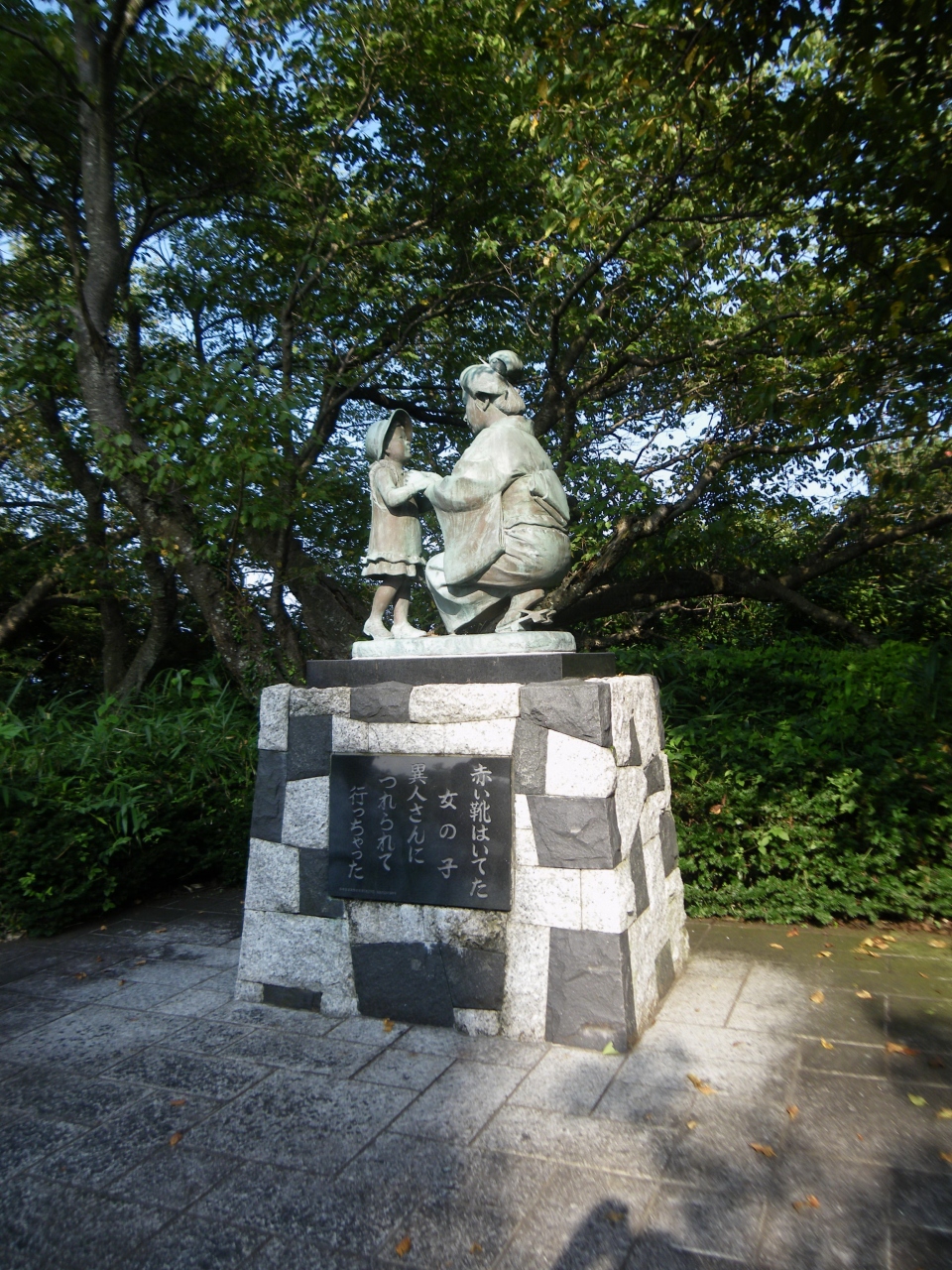 時間があったので散策していると赤い靴の女の子の像がありました。