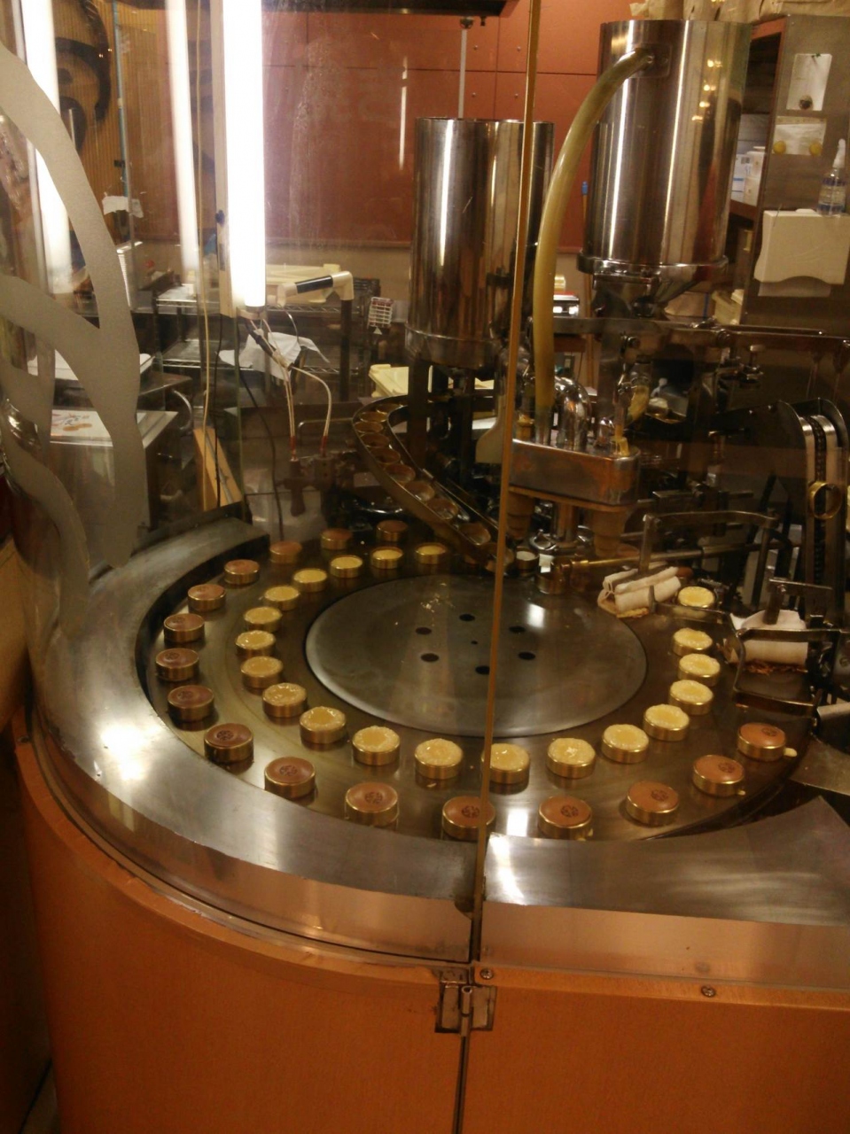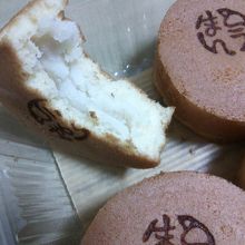 お店の中に機械があって、カチャンカチャンと金型におまんじゅうが焼き上げられていきます。