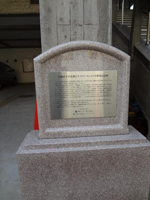 松戸市民会館の正面外階段の横に、碑が建てられています。当時、テレビ等でも大きく取り上げられた、女性宇宙飛行士、山崎直子さんの記念碑です。子供時代に、市民会館に併設されていたプラネタリウムに頻繁に通っていたことから、ここに建てられたようです。