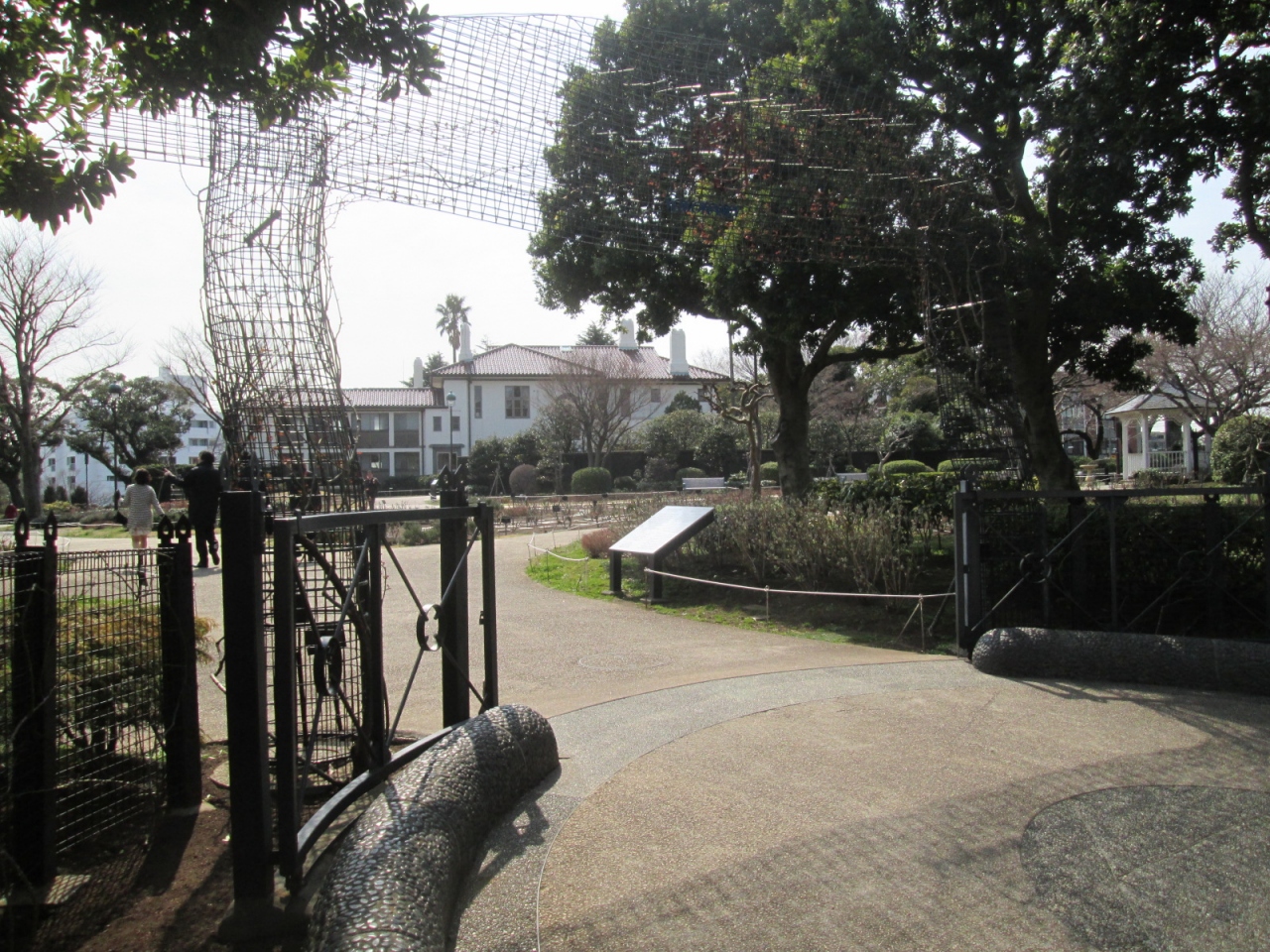 - みなとみらい線「元町・中華街」駅の5番出口から目と鼻の先に公園入口がありますが、そこから階段で丘を登りきると展望台、その奥になります