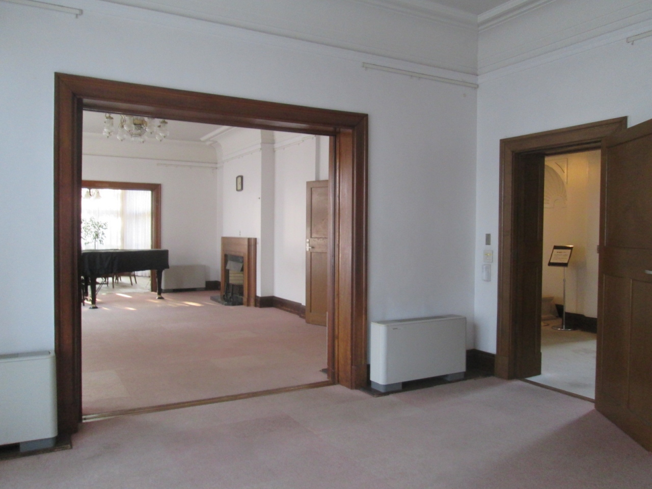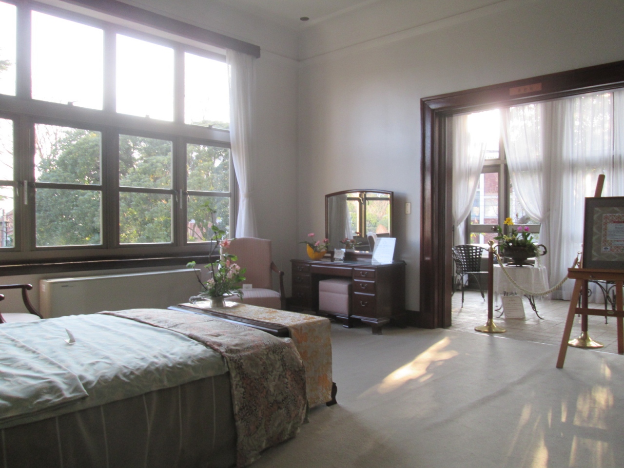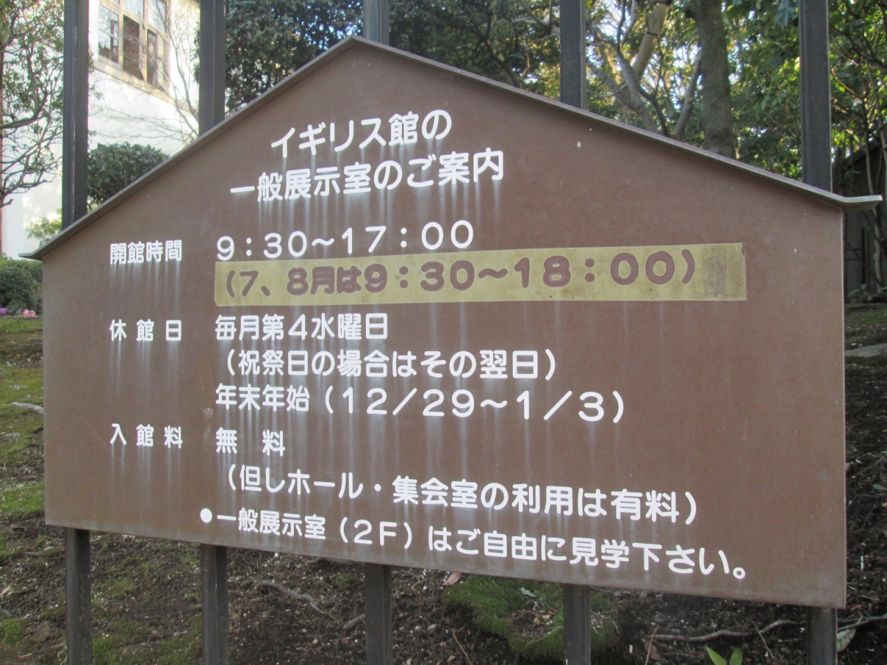 「港の見える丘公園」内にある「イギリス館」は、英国総領事公邸として昭和12年に建てられたものです。建物の基本デザインはコロニアル調ですが、質実剛健…というか頭が固いというか…無骨というか…たしかに近代イギリスっぽい雰囲気を感じます。館内1階にはサンポーチ、客間、食堂が並び、2階には寝室、化粧室などがあって見学することができます。この建物で見逃せないのは、玄関脇の壁にはめ込まれたジョージ?世時代の王冠入り銘版です。かつては大変に由緒正しい建物として扱われていたのでしょうね。こうした銘版を間近で見られるなんて…貴重な経験をしました。