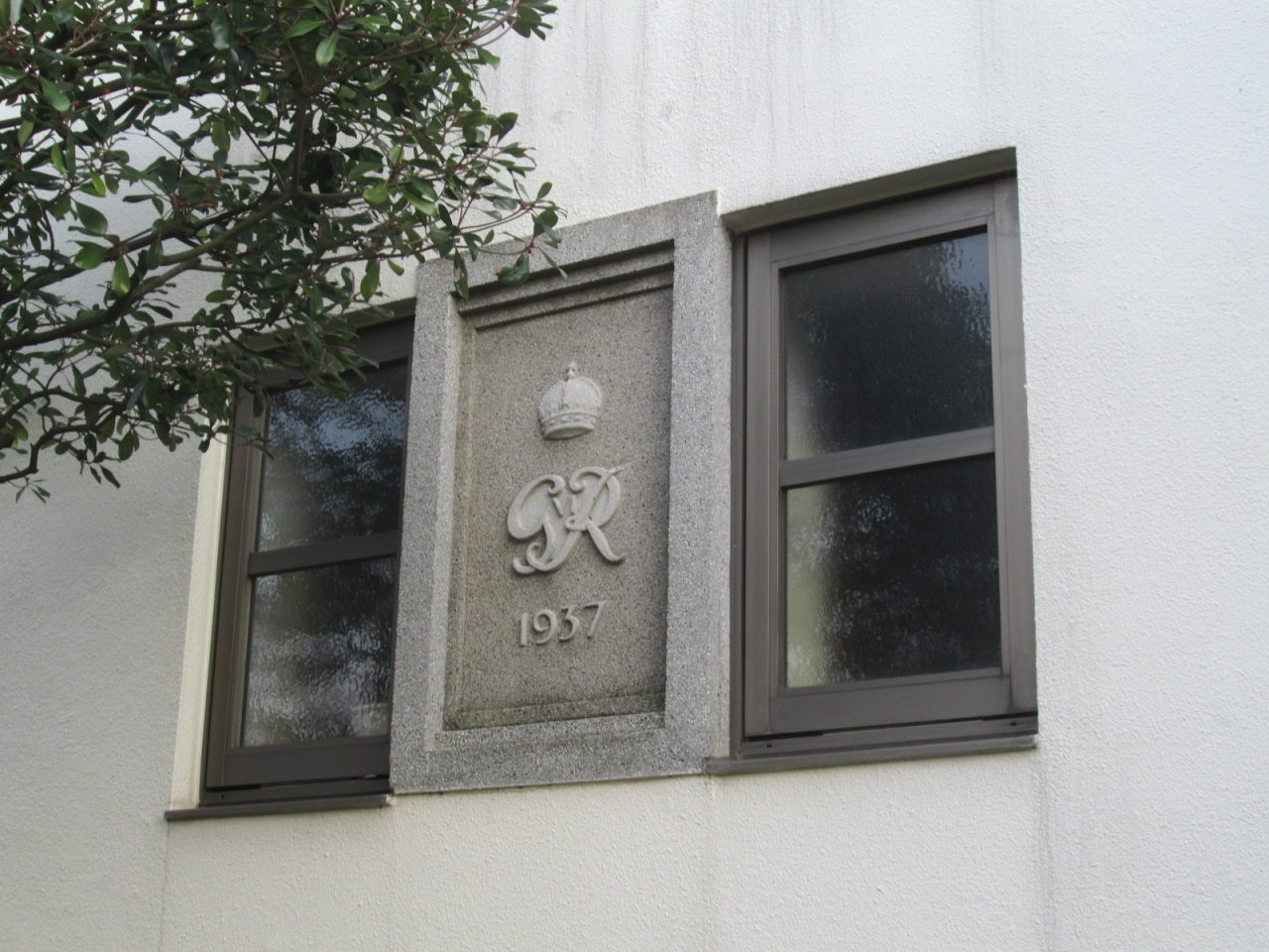 - 玄関脇の壁にはイギリス王ジョージ?世時代の王冠入り銘版がはめ込まれ、由緒正しい建物であったことが分かります