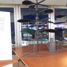 飛行機の大きな実物大のタイヤやエンジンの展示。いろんな航空会社のモデルプレーンもあります。