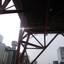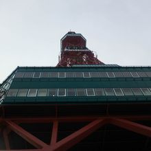 赤い鉄塔で、展望部分は濃い緑色でペイントされています。昔は、たしか薄い色だった気がしますが…。