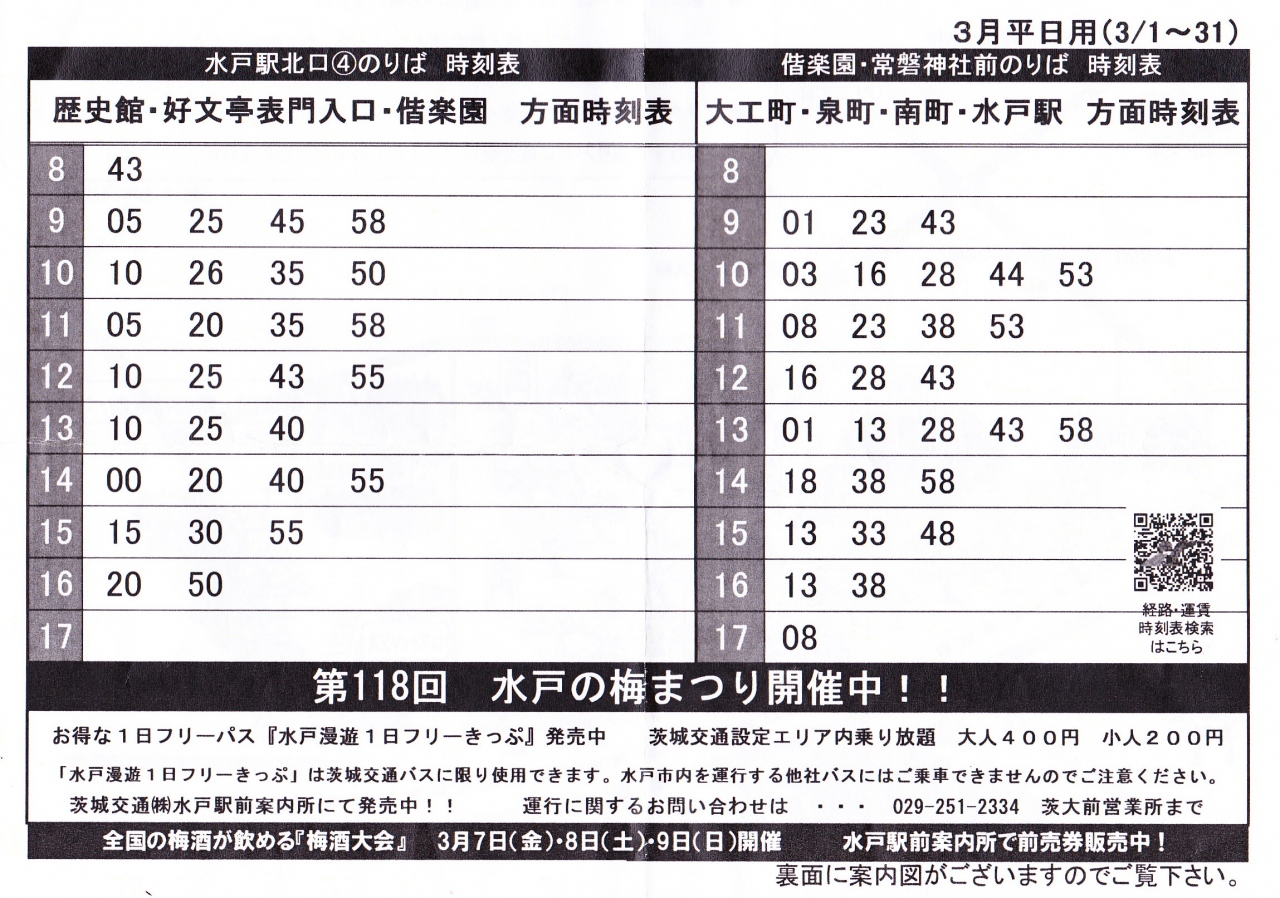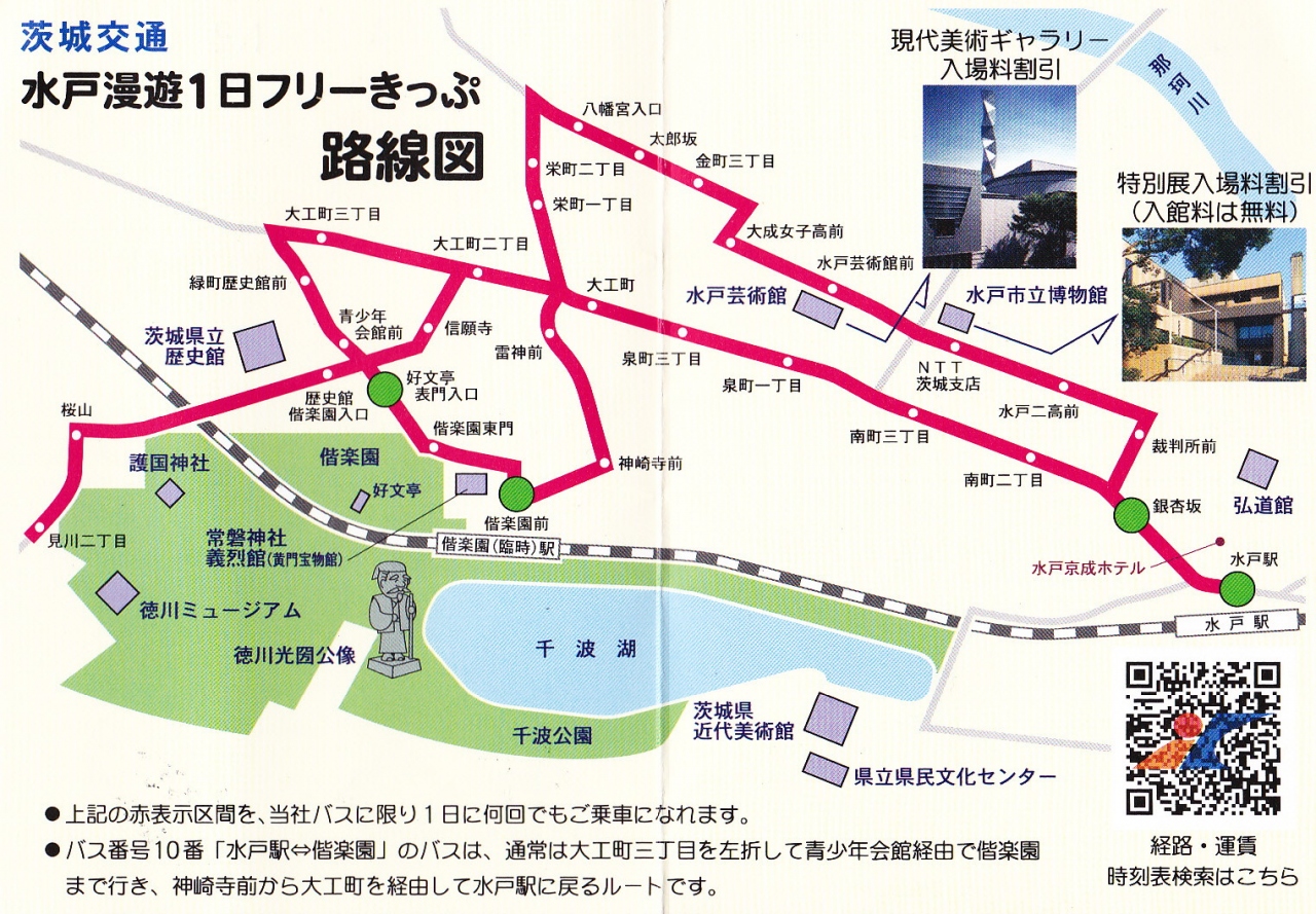 水戸市内なら「水戸漫遊フリー切パス」400円が便利でお得。