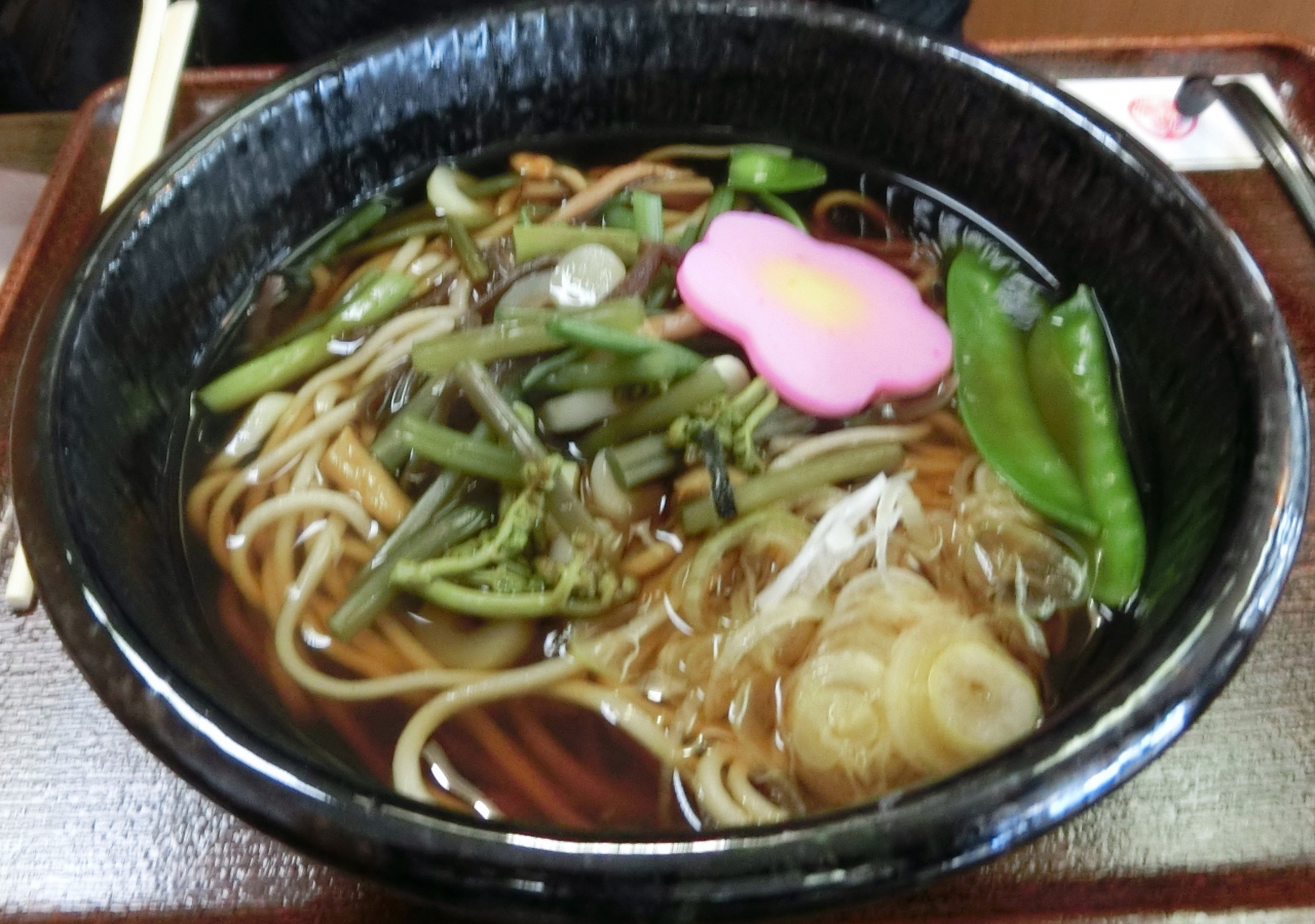 土産も売っている。「納豆御膳」のようなご飯類や麺類などがあった。私は山菜そば。観光地風メニューといった感じの味。特に特徴なし。