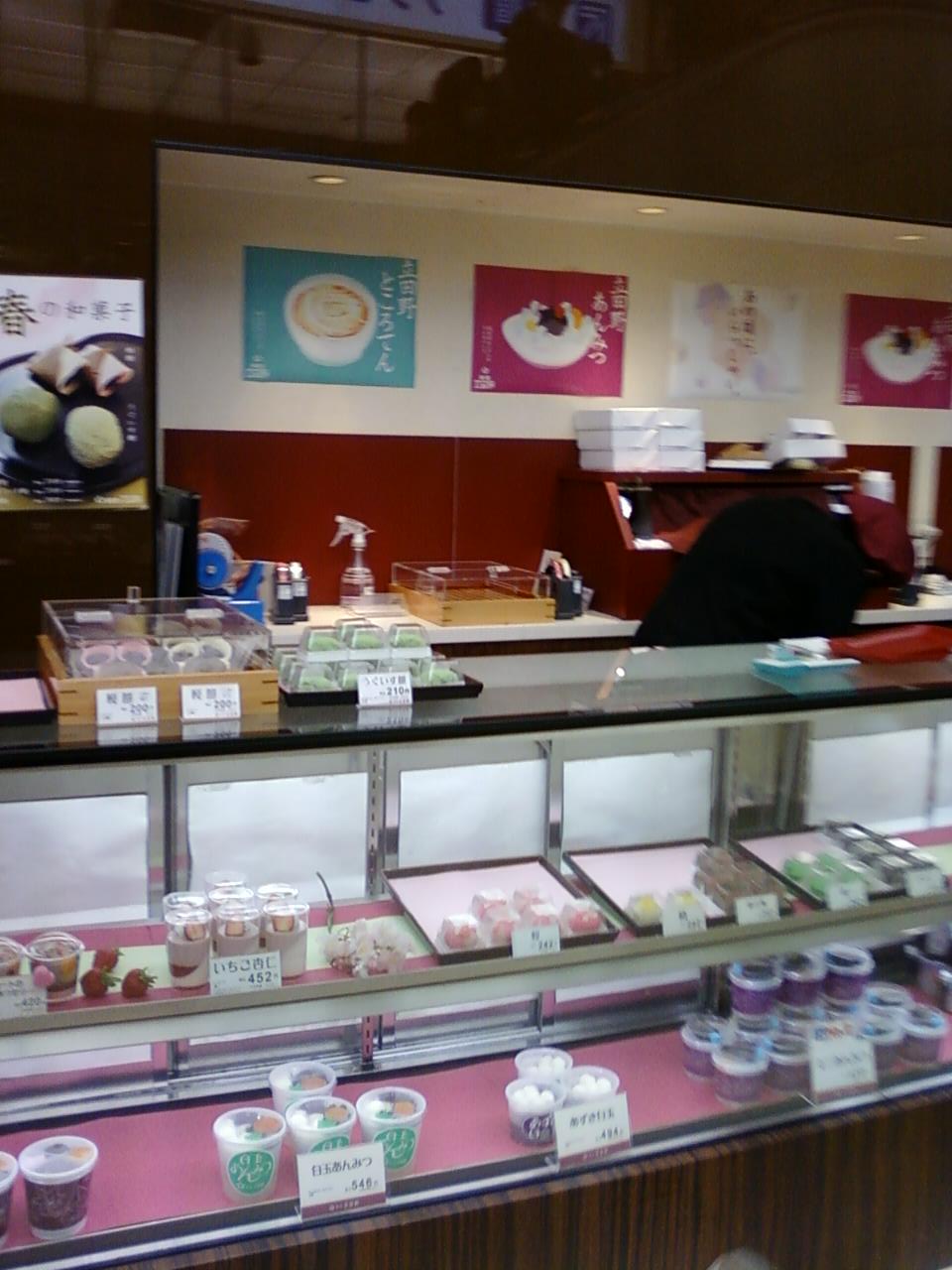 ここの銀座立田野さんは、新宿駅西口に連結している、京王百貨店の地下一階ににあります。地下一階と中地下に食品フロアが分かれているのですが、ここはその2フロアを結ぶ短いエスカレーターの脇に帯状にあるお店です。奥のほうにはちょっとしたテーブルスペース(甘味処)があります。かなりわかりづらい場所なのですが、改札に至近なので時間がない時などにはとても便利です。ここのあんみつが特におすすめです。