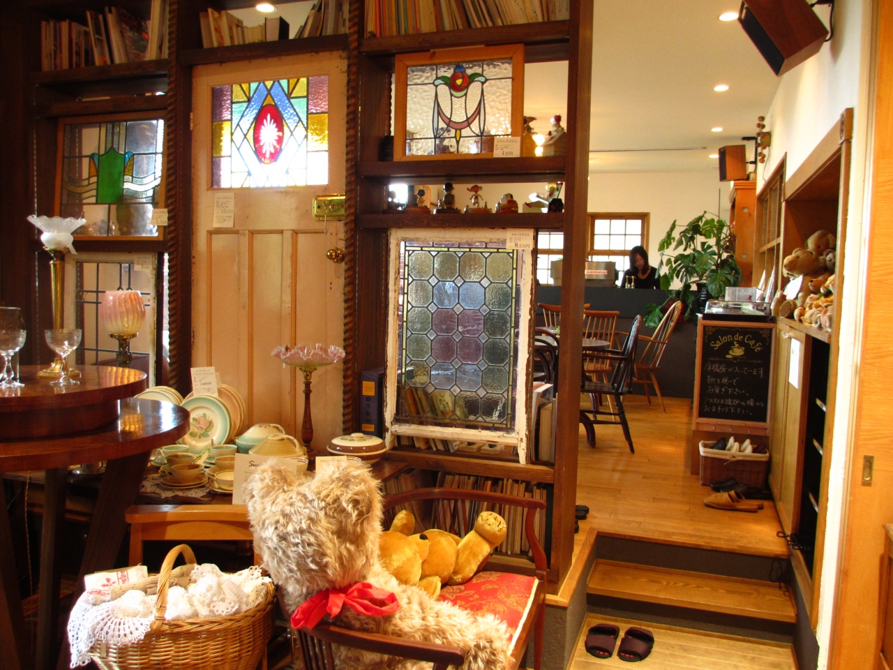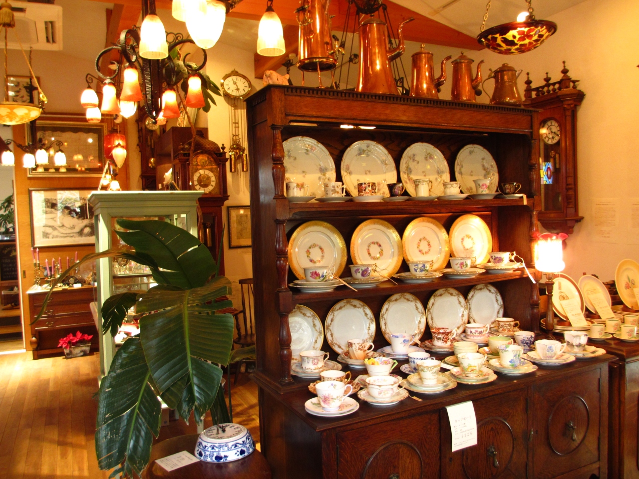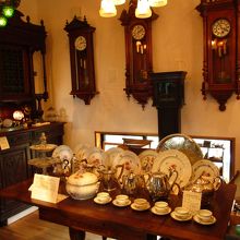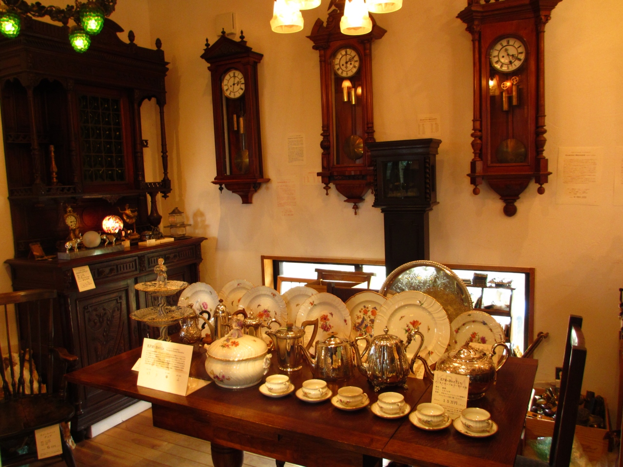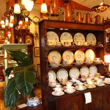 お店の中には100年前のアンティークな食器や家具、アクセサリーが