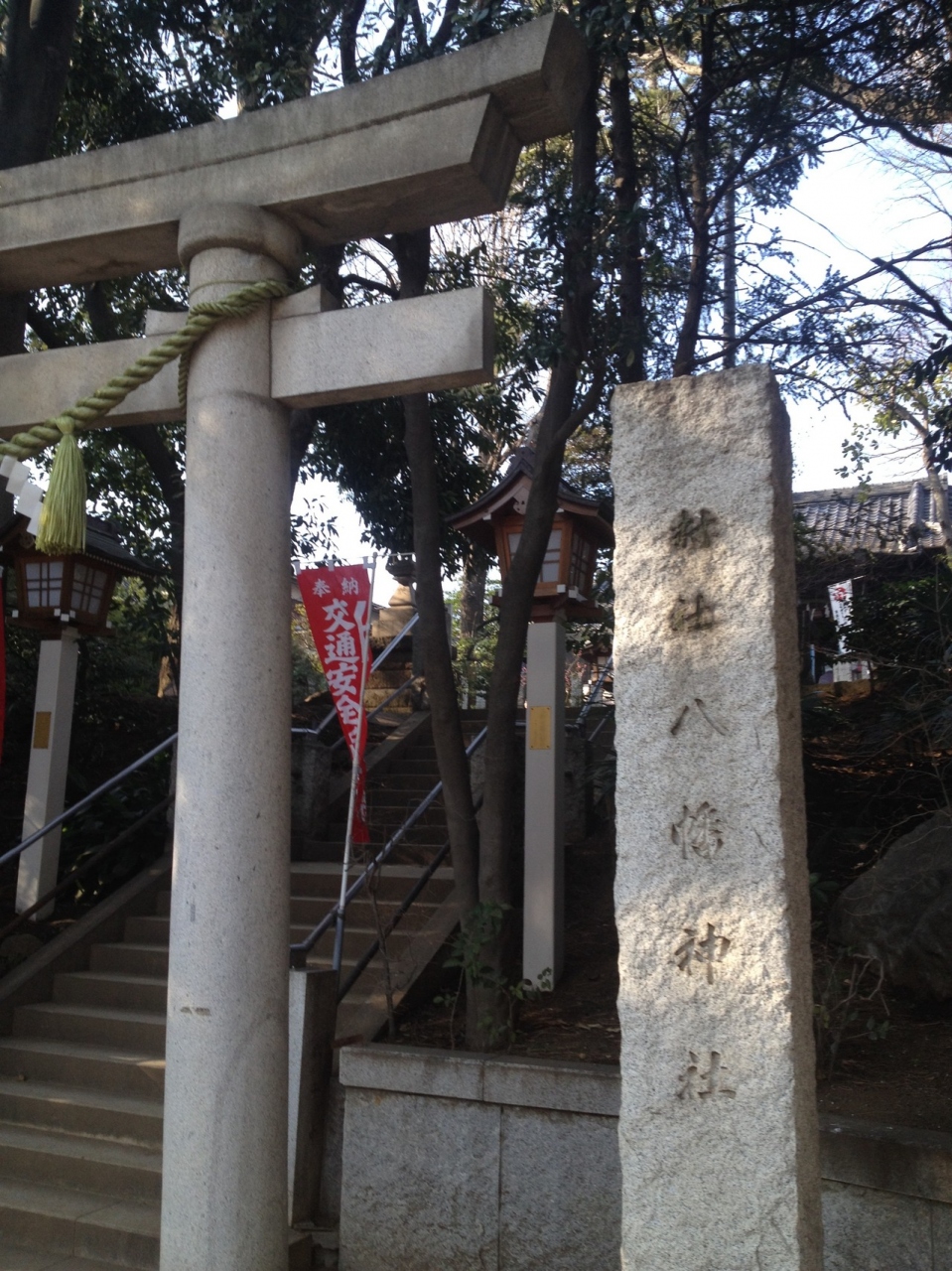 都会の住宅地とは思えないようなうっそうとした木々に囲まれた雰囲気の良い八幡様です。
