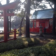 洗足池の小島にあり、橋でつながった可愛らしい小さな弁天様です。