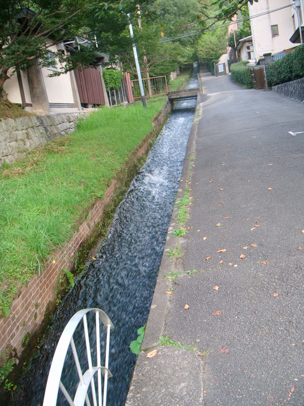 琵琶湖から注ぐきれいな水が、レンガの水路を流れる様子を