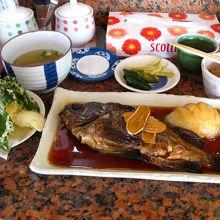 「かつおまご茶漬け」が人気メニューのようだが、今日上がったばかりのいいかさごがあるとのことで、かさごの煮付け定食を注文する。