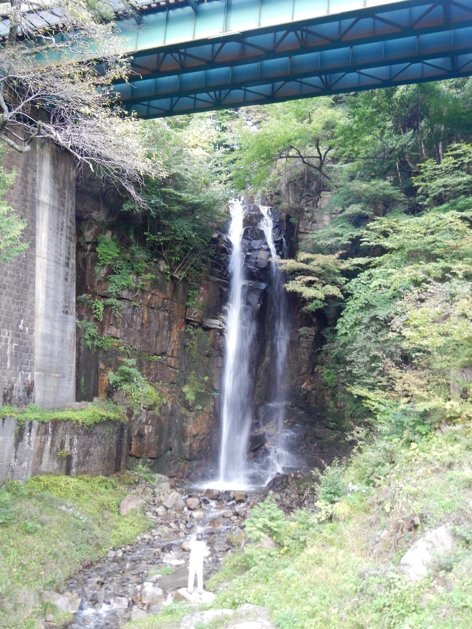 国道からも見えているという“超お手軽滝”で、真上にはJR中央本線が走っているのでそれが景観を少々損なっています。逆に言えば、それがこの滝の特徴なのかもしれません。