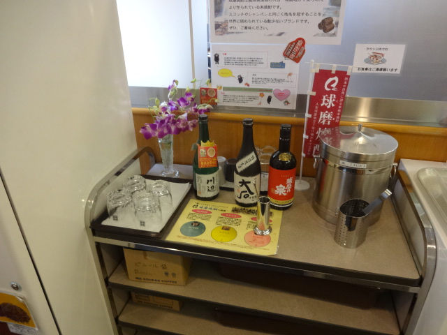 初めて熊本空港のラウンジに来ました。羽田と違って空いてました。日本酒があるのが珍しい、初めて見ました。ビールは2銘柄あり、1人1本飲めます。ソフトドリンクは機械を押すやつでした。おつまみは小魚スナック1種類でした。