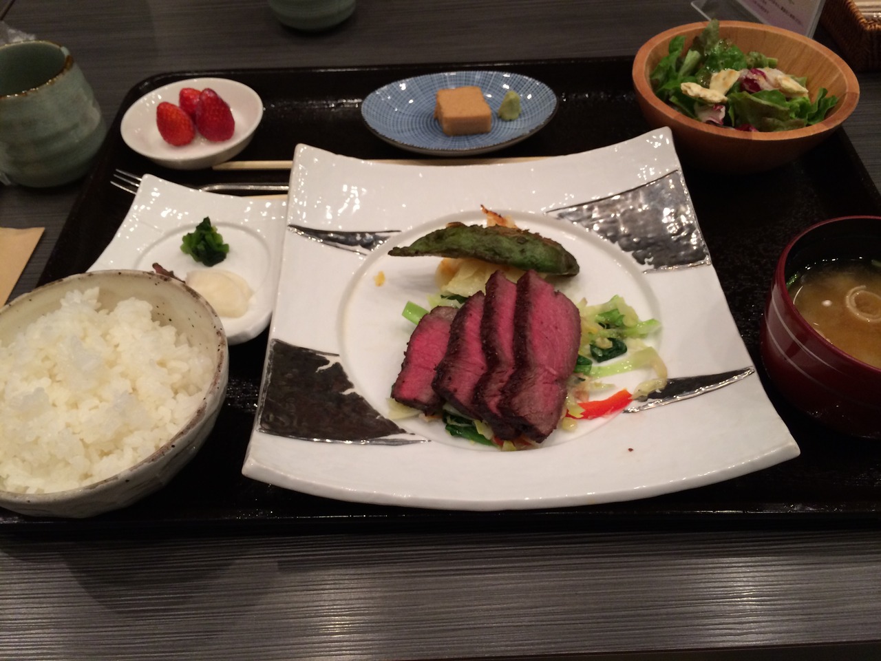 私は1500円のステーキを注文。ステーキに付ける泡醤油ソースが美味しかったです。