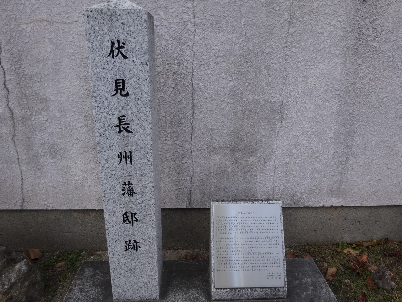 幕末の1864年、長州藩家老の福原越後は伏見長州藩邸から約500名の兵とともに、京へ進軍しようとした途中、大垣・会津などの藩兵と衝突し、禁門の変が起こりました。長州勢は敗走し伏見藩邸に戻り、連合軍が京橋から伏見藩邸を砲撃、伏見長州藩邸は焼け落ちたそうです。