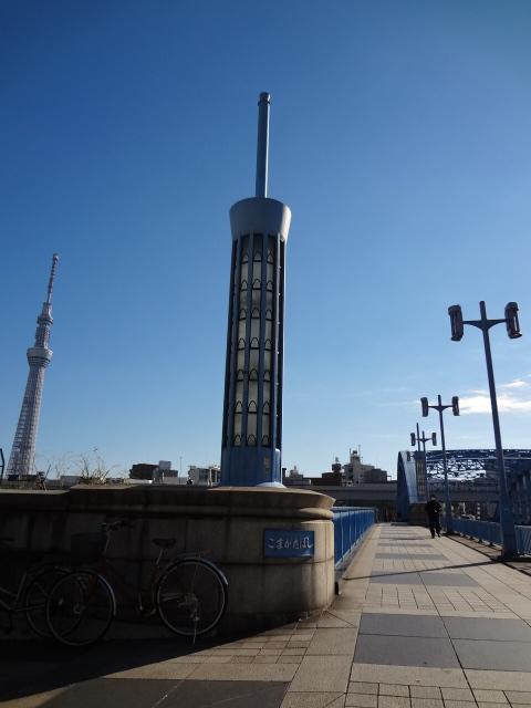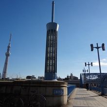 欄干などもなかなか趣があるのですが、浅草方面から徒歩で渡ると、視線のむこうにはスカイツリーの絶景が見えます。昔からのアサヒビール本社ビルなどと相まって、「新しい浅草」の光景を堪能できます。
