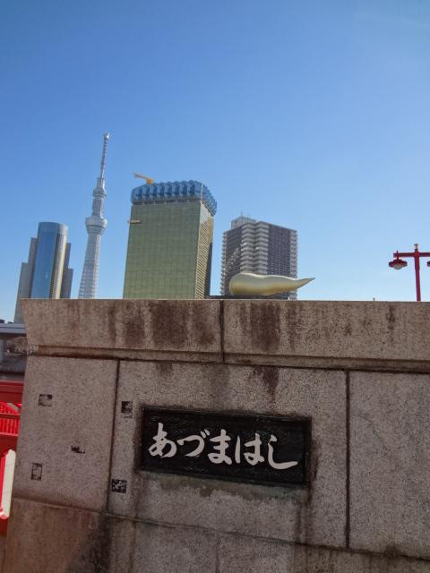 雷門通りを東に進むと隅田川をわたりますが、その橋が「吾妻橋」です。