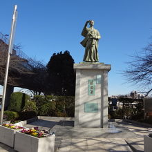 うるおい広場」と名付けられた場所に、勝海舟の銅像があります。