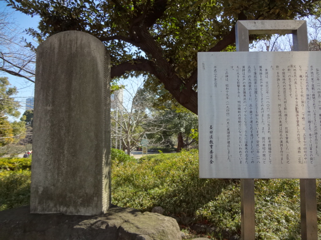 その藤田東湖の漢詩が刻まれた石碑が、隅田公園内に建てられています。