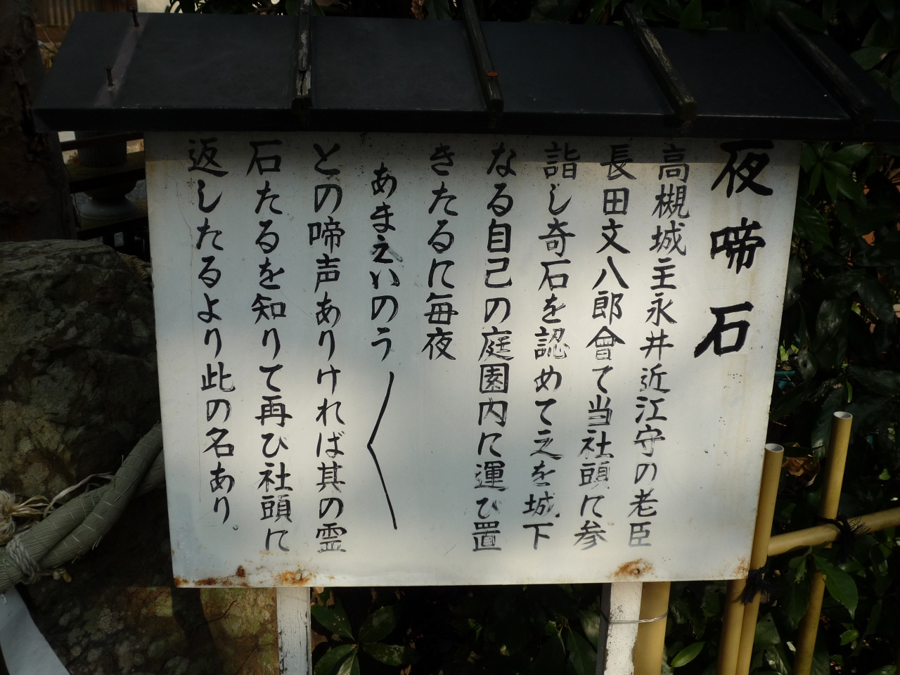 それから、この石を「夜啼き石」と呼ぶようになったという伝説があります。