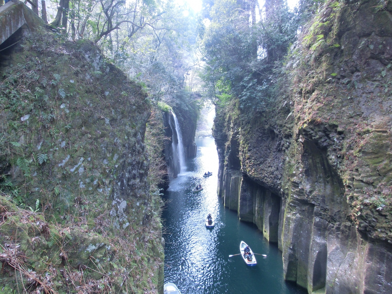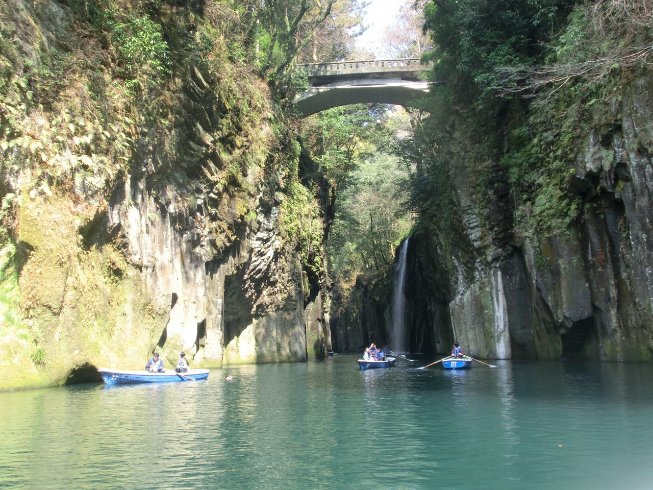 日曜日の午前中に行きましたが、すでに一番近い駐車場は満車になっていました。しかしいざ降りてみるとそれほど人の多さを感じることなく渓谷を楽しむことができました。ここのおすすめはボートだそうで、30分2000円と安くはないのですが、割と多くの人が借りていたように思います。