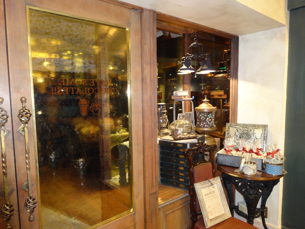 四条川端、京阪の駅近く。ショップの中に人がいっぱいだったので覗いたら、チョコレ−トショップだった。店内のインテリアに目を奪われた。おしゃれで、量り売りのチョコを自分で、紙の袋か缶に入れる。チョコの種類は、5-6種で合わせて100g以上。その他に板チョコや高級な一口チョコ、アイス、ジャムなどあった。値段は、割高。ただ、雰囲気は、よかった。店員さんも親切だった。