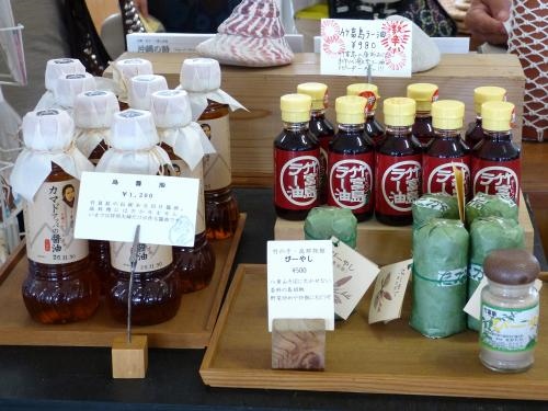 石垣島行きのフェリーを待つ間、竹富島港ターミナル内にある「てーどぅんかりゆし館」をのぞいてみました。ほんの小さなスペースなのですが、竹富島で作られているお醤油やラー油など、なかなか通の品揃え!竹富島らー油は、かなりスパイシーですが、後を引くウマさです。