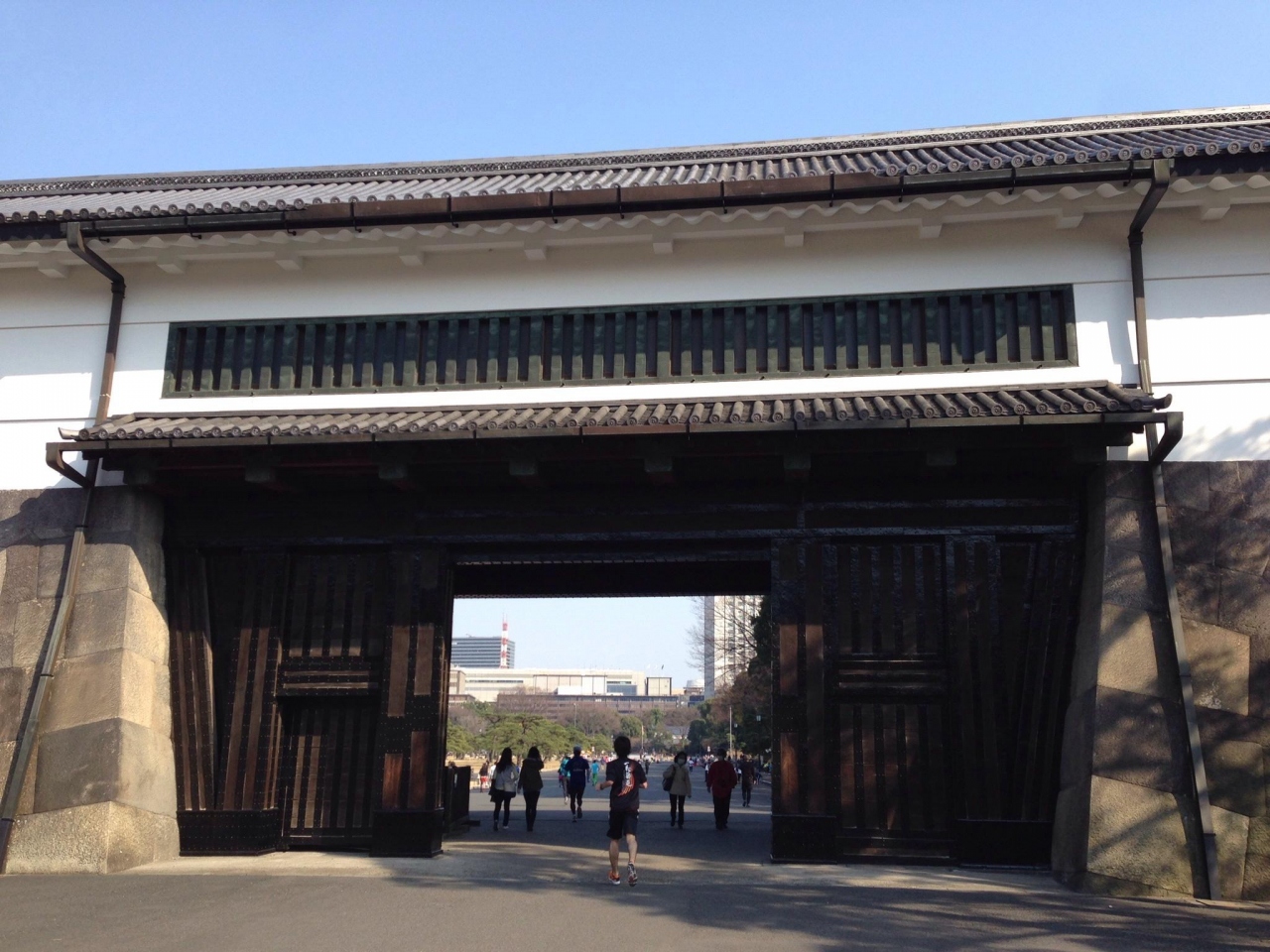 江戸時代末期の桜田門外の変のでも名前を残すところで、石垣の間に木製の大きな門がドーンとそびえています。
