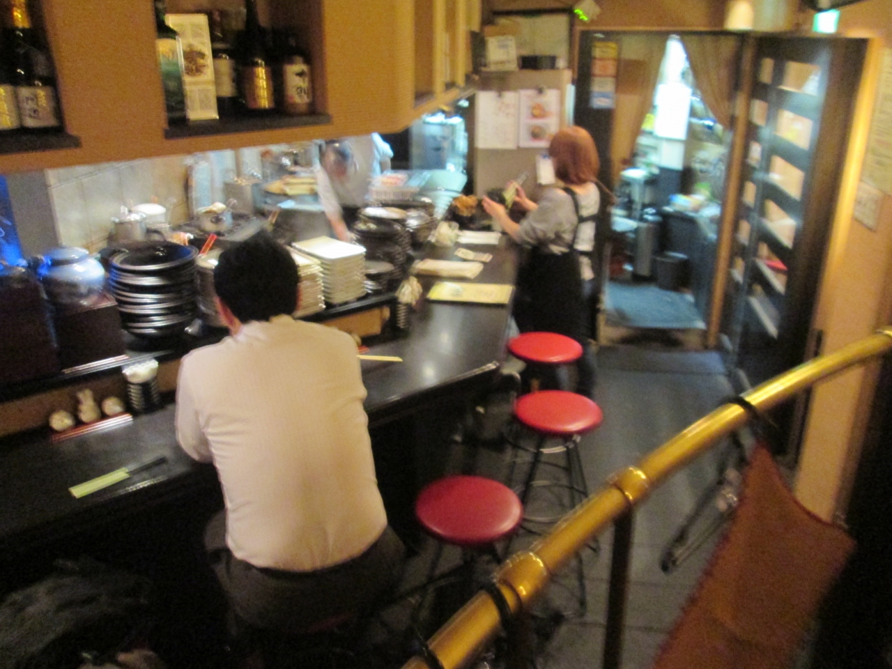 横浜駅東口を出て徒歩5分程度。蕎麦屋とバーが一緒になったようなお店である。店内は狭いが店内の席は1階、中1階、地下にあり配置がおもしろい。焼酎とつまみ数セットを注文して1.5万程度でリーズナブルな値段であった。