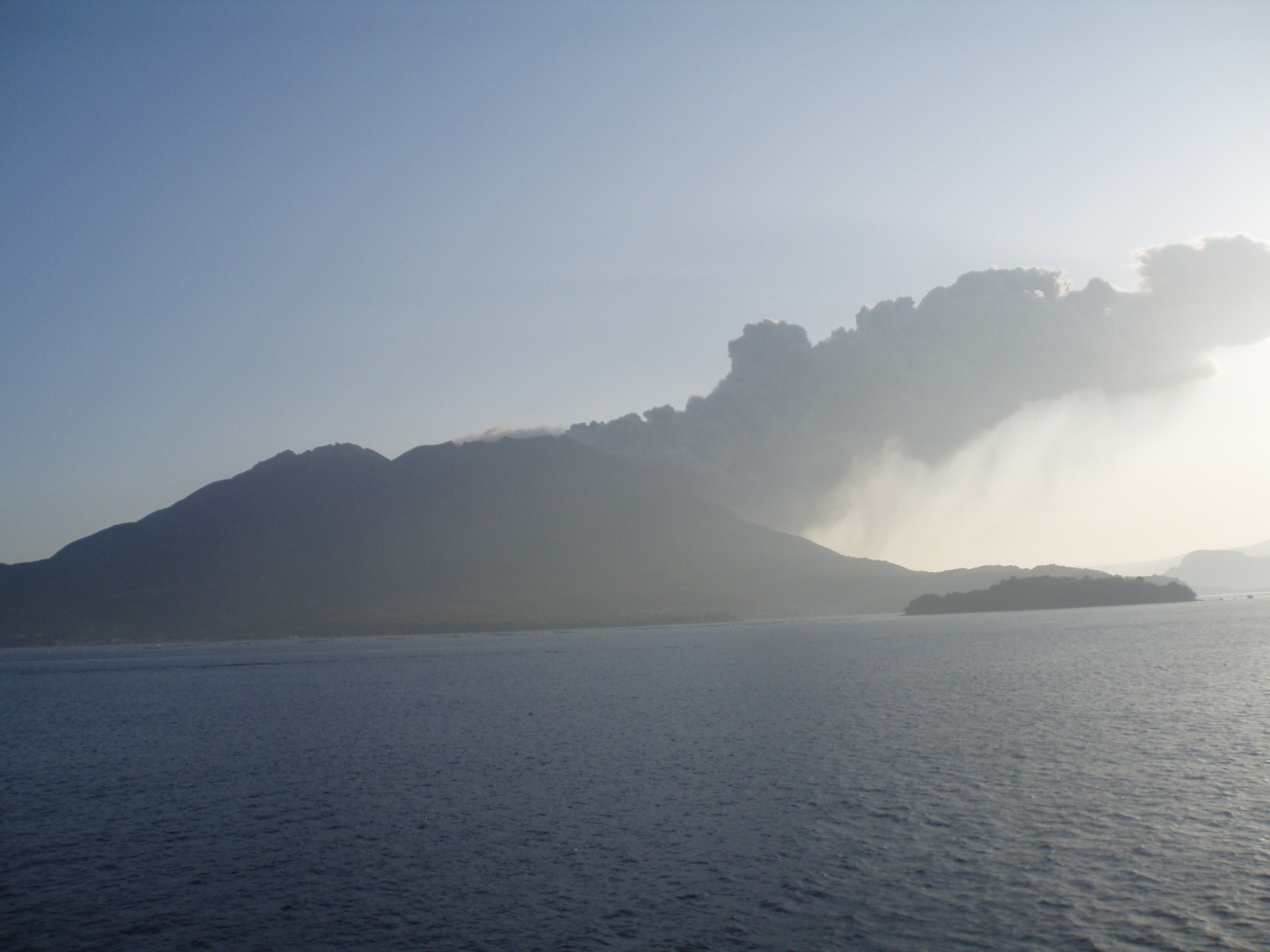 鹿児島から屋久島へ行く高速フェリーから桜島は良くみえます。鹿児島を象徴する島ですね。今でも噴火をしていますが、運が良かったのか悪かったのかわかりませんが、見事に噴火をしている状況の写真が撮れました。生活している人達は火山灰で大変です。