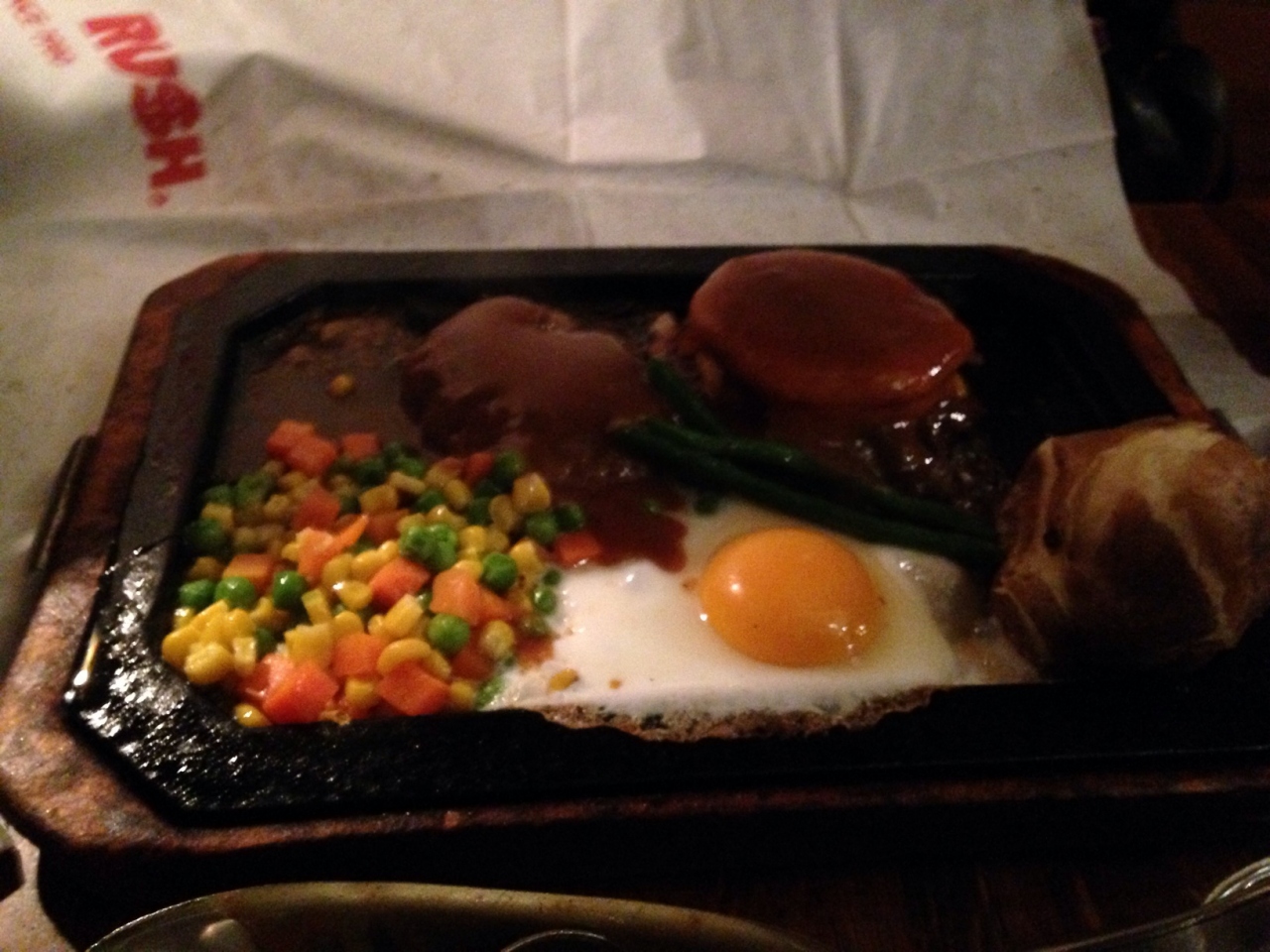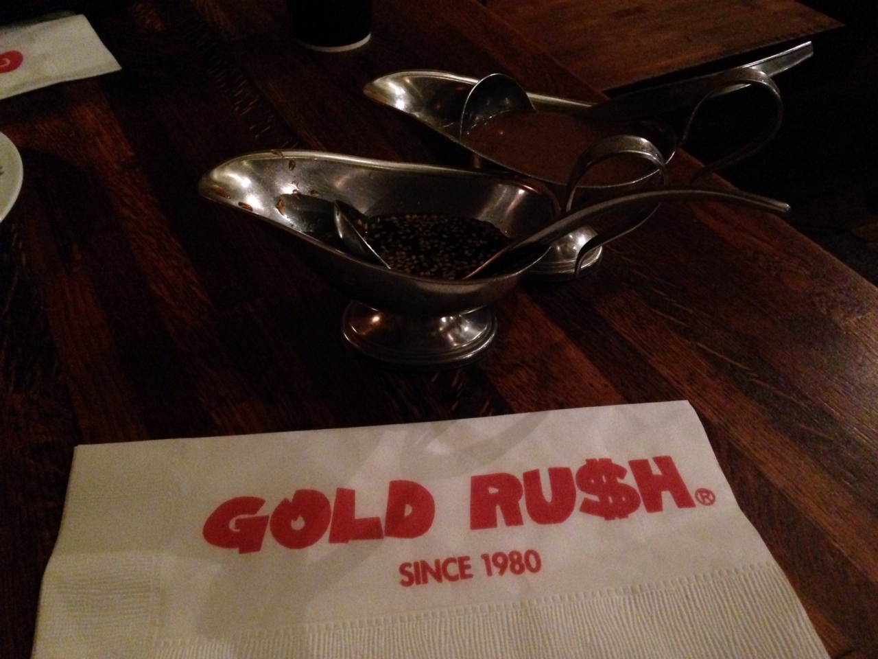 ゴールドラッシュという名前の通り、お店の装飾が当時のアメリカの雰囲気を醸し出しています。少し暗めでハンバーグをじゅうじゅう焼いているせいか、タバコOKなせいか、少し煙たい気もしました。