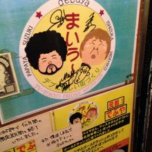 エレベーターを降りるとすぐに石ちゃん&パパイヤ鈴木のまいうー色紙などがずらり。ますます期待が高まります。