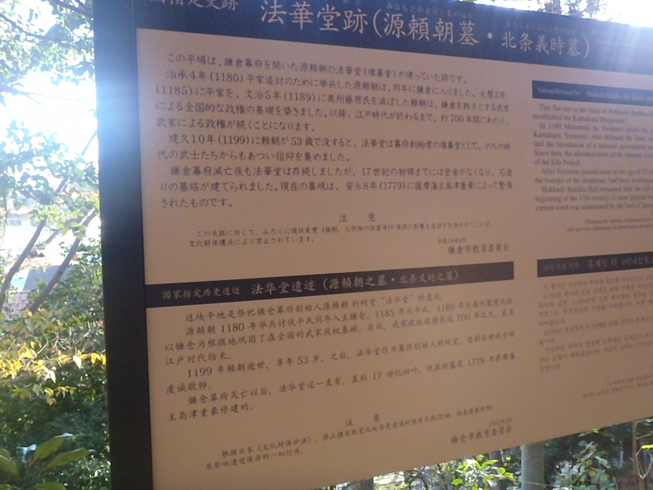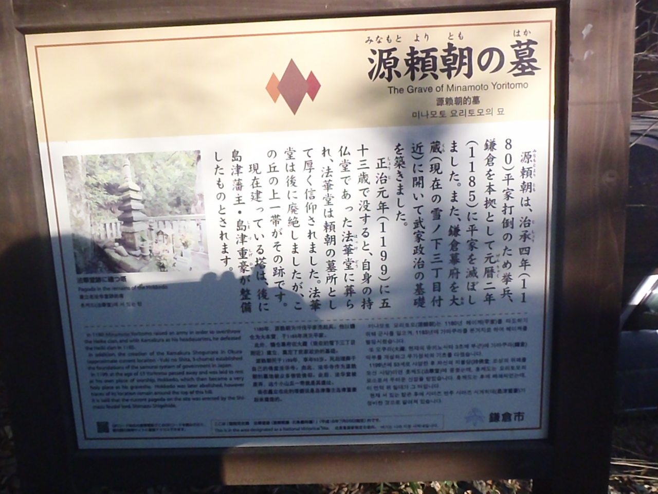 鎌倉幕府を開いた源頼朝公の墓なのだからと期待しておりましたが石柱だけとは期待外れと言うかあたりまえと言うかやぐらに無いのだから鎌倉では異例なのかもしれないと思いました。
