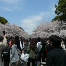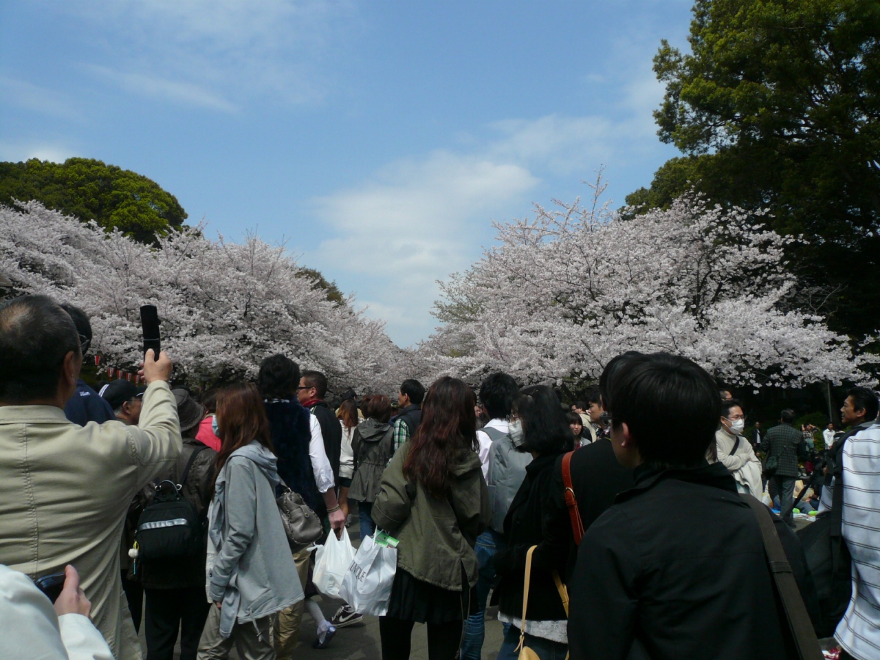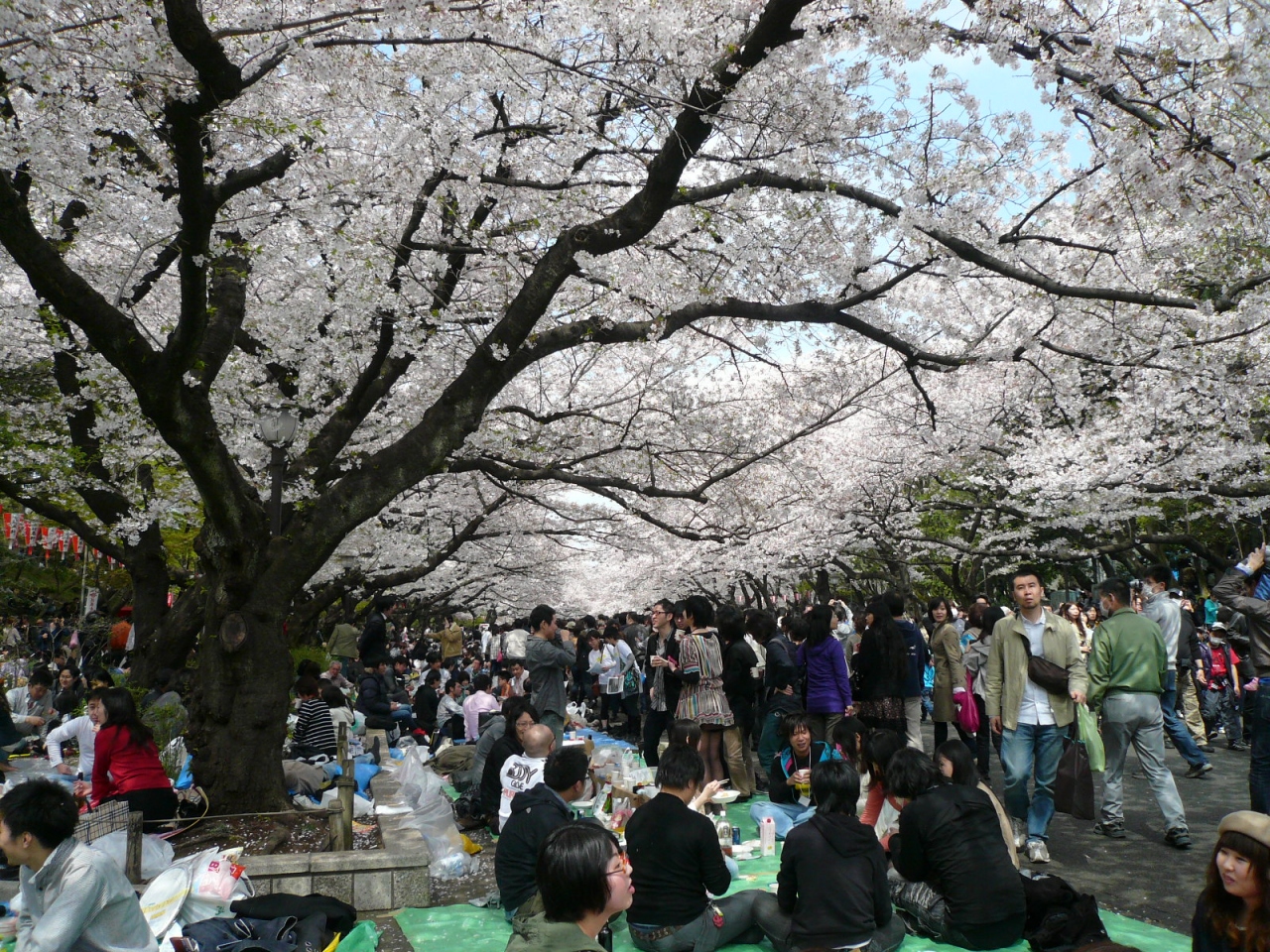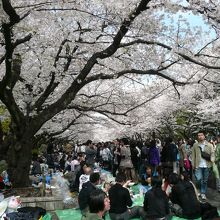 上野駅の前にある上野恩賜公園のお花見です。毎年、昼夜問わず席取りの競争が激しい場所で、沢山の花見客で賑わいます。音楽を流して歌ったり、踊ったり、花見の宴は最高潮に盛り上がります。そのお花見風景を見ているだけでもおもしろいです。もちろん、桜の木は多く見ごたえがあります。