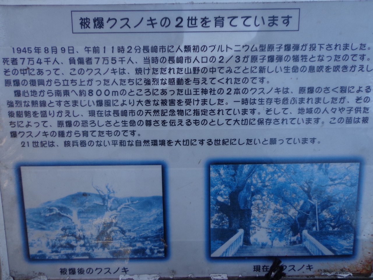 園内の隅に長崎原爆で生き残った楠のたねから発芽したた樹木が元気に育っていまし