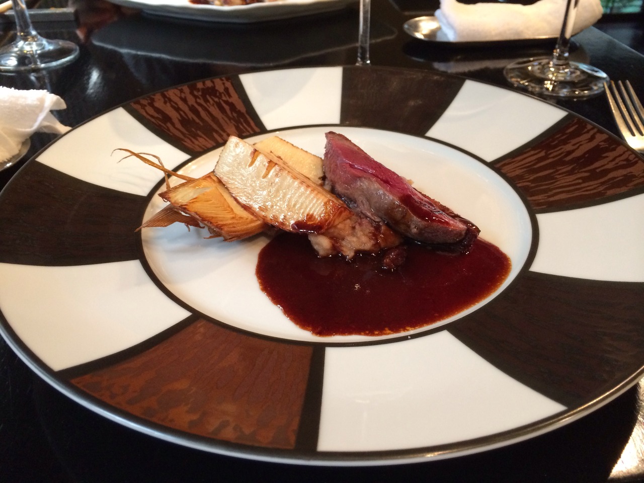 ランチはプリフィクスで1000円追加で鴨と筍のメインの筍が旬で美味しくいただきました。